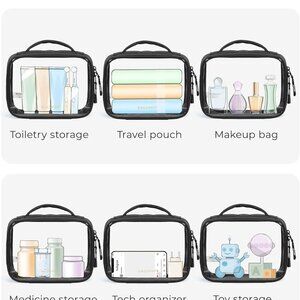 TSA APPROVED - The 8.26" x 5.9" x 2.75" clear makeup bag complies with TSA's 3-1-1 liquid rule and can hold four 3.4 oz bottles. The all-around transparent design helps to quickly and easily see the contents of your bag, allowing you to breeze through airport security.