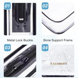 Waterproof and Reinforced Seams: This clear makeup bag is made of thick transparent PVC material, which is durable and easy to wipe clean; The reinforced seams prevent the bag from splitting easily, effectively reducing the risk of liquids leaking out from the bag Transparent for Easy Access: The clear travel bag with a large top opening allows for easy access to what you need; The two pack is perfect for accommodating different storage needs; It is suitable for travel bottles, as well as for storing cosmetics, toiletries, toys, and small items
