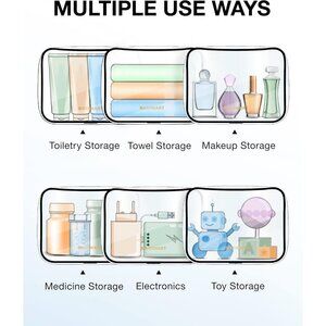 Transparent for Easy Access: The clear travel bag with a large top opening allows for easy access to what you need; The two pack is perfect for accommodating different storage needs; It is suitable for travel bottles, as well as for storing cosmetics, toiletries, toys, and small items. B1403