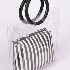 Clear Transparent Tote & Striped Make-Up Case - Bag in Bag - 2 for 1- NWT