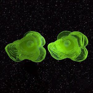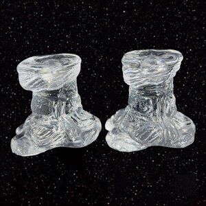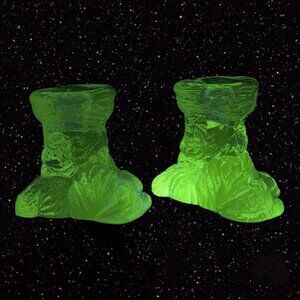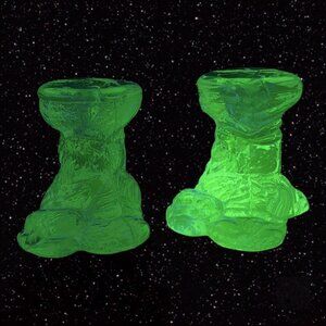 Clear Tree Shaped Candle Stick Holder Set Signed STM 1975 Manganese 365nm VTG