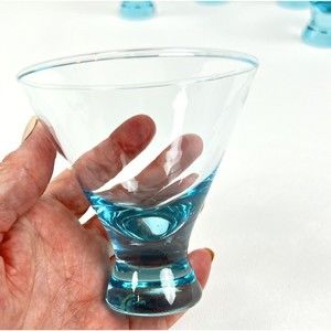Clear Turquoise Aqua Cocktail Glasses 3.5” Set/6 Shots Barware Sipping Petite