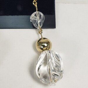 Clear Twisted Bead Drop Earrings w/ Gold tone Accent Modern Statement Dangle