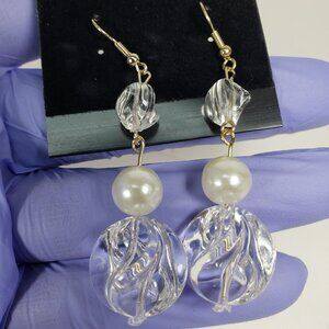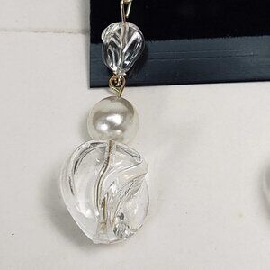 Clear Twisted Bead Drop Earrings w/ Off-white Accent Modern Statement Dangle