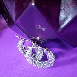 Clear White Diamond Hoop Earrings on 925 Sterling Silver Women's
