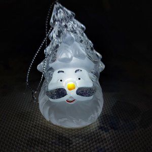 Clear White Santa Claus Lights Up Ornament Battery Operated Ornament