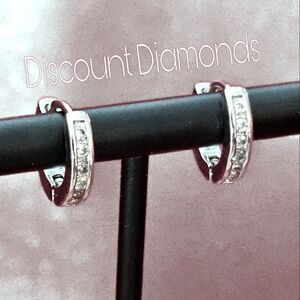 Clear White Assymmetric Diamond Huggie Earrings on 925 Silver