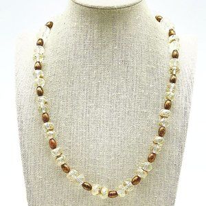 Clear and Brown Beaded Necklace Silver Tone Classic Career Cosplay LARP Gift