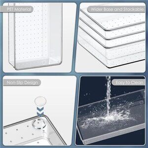 🧿【Stackable and Non-slip Design】Our plastic drawer organizers come with enough non-slip silicone pads. They will hold these organizers firmly in place on the drawer or desk. When not in use, these organizers can be stacked together to save your storage space.