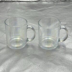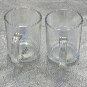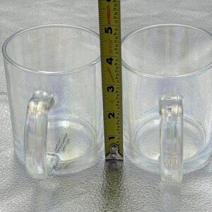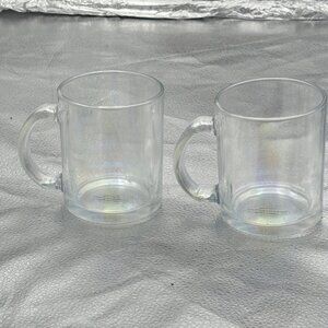 Clear iridescent Glass Coffee Mug Set of 2 Handle Tea Modern Classic Minimalist