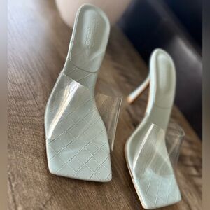 Scuffs on back of one shoe and front of shoe- most likely from the material rubbing against another.