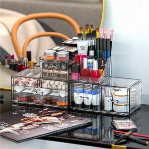 Clear makeup organizer stackable drawers vanity skincare jewelry storage box