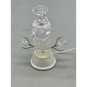 Clear plastic Snowman Figurine Christmas decor LED Light Glitter Base 4.25" READ