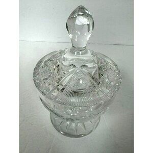 Clear pressed glass vintage candy dish with lid etched floral designs