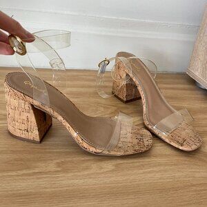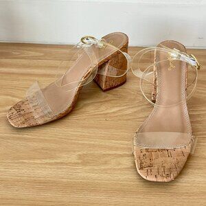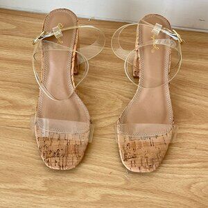 Clear strap cork wedge heels