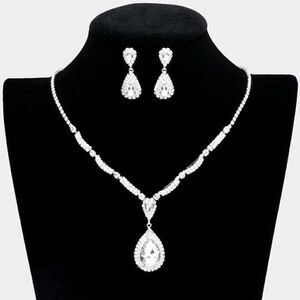 Clear Teardrop Stone Accented Rhinestone Necklace Set