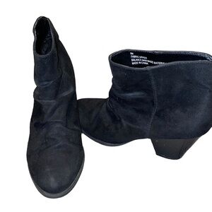 Clearance DIBA Ladies Black Faux suede ruched bootie size 8 Fabric upper 3” Heel