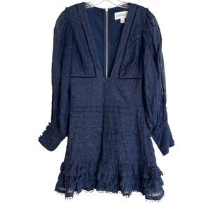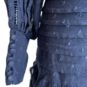 "Clearance" Mackenzie Mode Mariposa Navy Swiss Dot Ramie Ruffled Mini Dress Sz 4