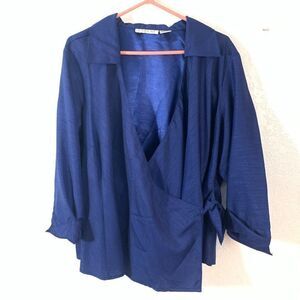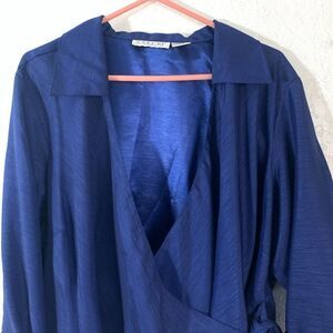 Clearance 1/2 off -Selene Royal Blue Faux Wrap Dressy Top 3X