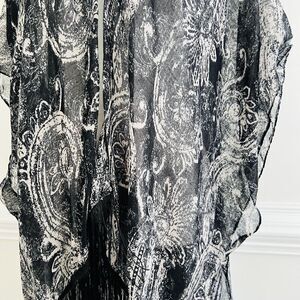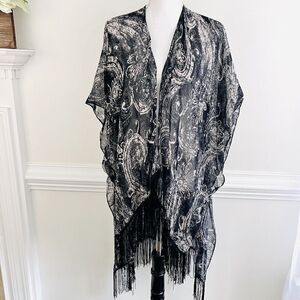🎉Clearance🎉Black & Gray Very Lightweight Soft Flowy Fringed Boho Womens Wrap