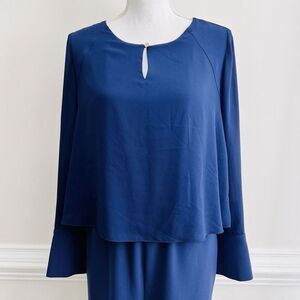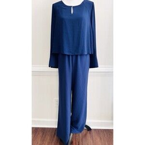 🎉Clearance🎉Black Label by Chicos Navy Blue Chiffon Pleated Jumpsuit Sz Small