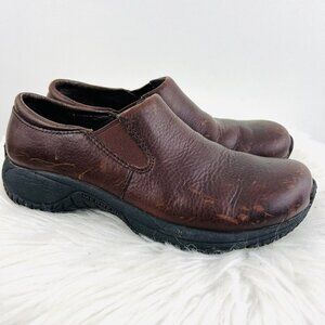 🎉Clearance🎉Merrell Dark Brown Leather Distressed Slip On Clogs Size 6.5