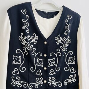 🎉Clearance🎉Vintage Jeffrey & Dara Black & White Embroidered Modest Dress 12