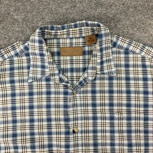 Clearwater Outfitters Shirt Men XXL 2XL Blue Plaid Cotton Button Up Short Sleeve