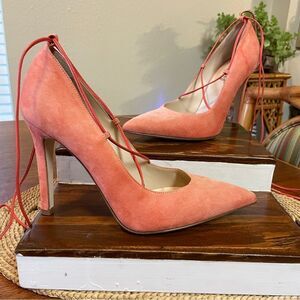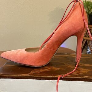 Clef Genuine Suede Leather Stiletto Pumps Made in Italy Coral Ankle Lace