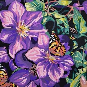 Clematis & Butterflies Finished Acrylic Paint By Number Painting 11×14 W/ Border