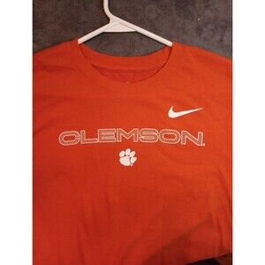 The product is a Nike long sleeve shirt in XL size, designed in the iconic Clemson Tigers orange color. Made for fans of the Clemson Tigers football team, perfect for showing support during games or casual wear. With its high-quality construction and distinctive design, this tee is a must-have for any Clemson fan looking to represent their favorite team in style.