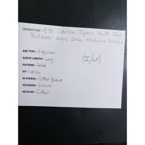 Clemson Tigers Half Zip Pullover Men's Size Medium Orange