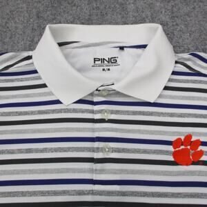 Clemson Tigers Polo Shirt Mens Medium White Gray Purple Striped NCAA Football PING Golf