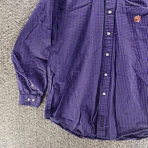 Clemson Tigers Shirt Adult Large Purple Check Crable Sportswear Button Up Mens
