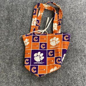 Clemson Tigers Tote Handbag Handmade Handles Ribbon Tie Close Cloth Orange