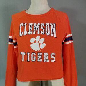 Clemson Tigers shirt women's medium orange cut off long sleeve bling