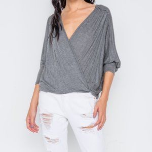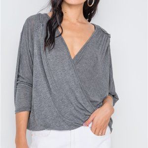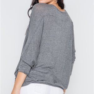 Cleo Ladies Lightweight Gray Front Knot Twist Drape Top - Small Only