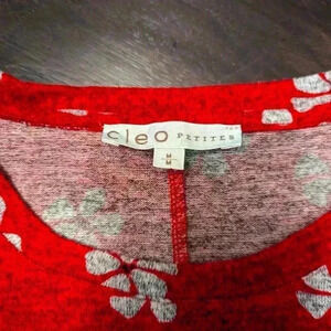 Cleo Petite Women's Raspberry Red Holiday 3/4 Sleeve Knot Top - size M like new. Material is Polyester and Spandex that gives it the right amount of stretch! Perfect casual top for the holidays.