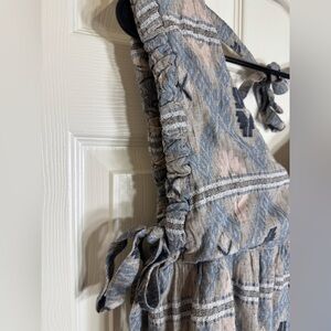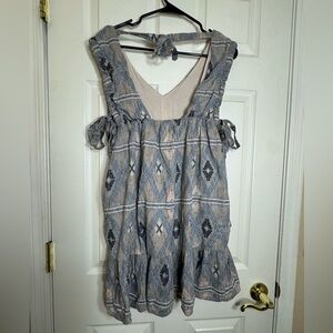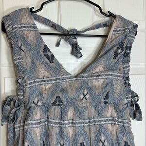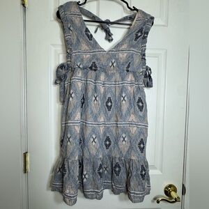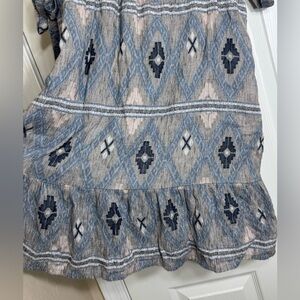 Cleo + Wolf Blue Boho Aztec Dress S Tie Back Ruffle Sleeves Cotton Lined
