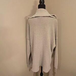 Cleo + Wolf Drop Shoulder Ribbed V Neck Fringed Sweater, size XL