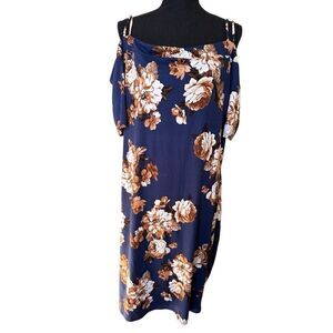 Cleo Women’s Open Shoulders Dress Navy Blue Floral Plus Size 3X