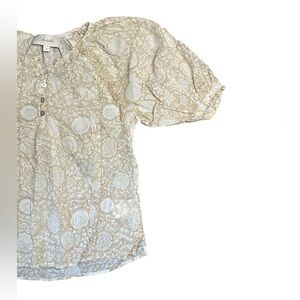 Chic beige blouse with floral pattern. Features soft fabric and stylish design. Ideal for versatile wear.