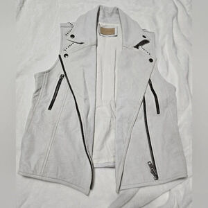 Cleobella 100% Leather Studded Moto Vest in White, Size Small, EUC!