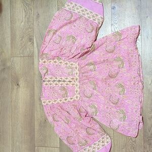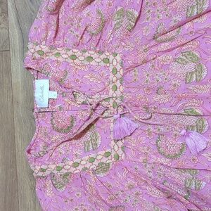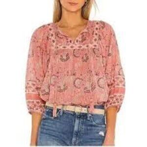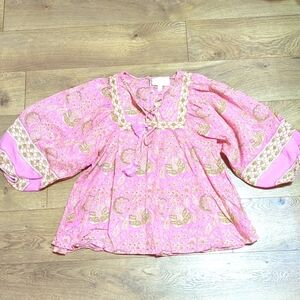 Cleobella Amaryllis Pink Green Boho Blouse Tassel V Neck Small