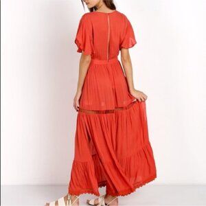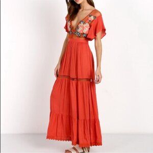 Cleobella Amery Maxi Coral Embroidery Dress Medium