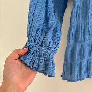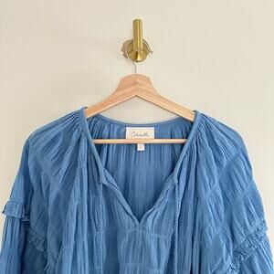 Cleobella Azariah Long Sleeve Smocked Split Neck Blouse Blue S