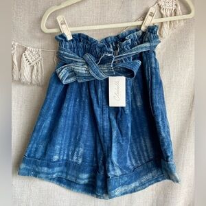 Cleobella Blue Tie Waist Geisha High Waisted Short Size Small NWT