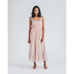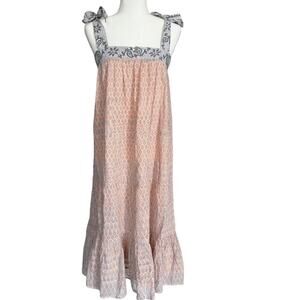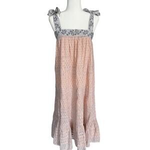 Cleobella Cassandra Midi Dress, Scallop Block Print Pink Paisley Boho size XS