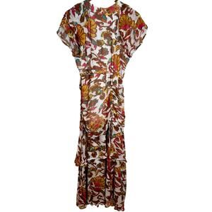 Cleobella Cecilia Shea Abstract Floral Ruched Front Slit Ankle Dress Small