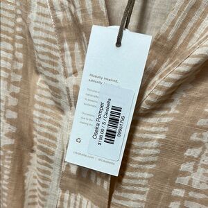 Stylish short-sleeve jumpsuit by Cleobella. Features a tie waist and subtle pattern. Perfect for casual outings.